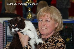 "Sich mit fremden Federn, hier "mit fremden Katern" schmücken....... das war auf der Ausstellung des KFG, als ich mal wieder bei Ina und ihrem Kater "Wurlitzer in Concert" vorbeischauen mußte, denn dieser Kater ist einfach genial, nicht nur vom Aussehen, sondern auch durch sein bezauberndes Wesen. Er wohnt bei Ina Wurth in Solingen www.bkh-von-der-klingenstadt.de |